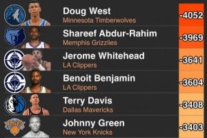 历史上总正负值最低的10位球员!96届拉西姆入选 有人场均-7.1分